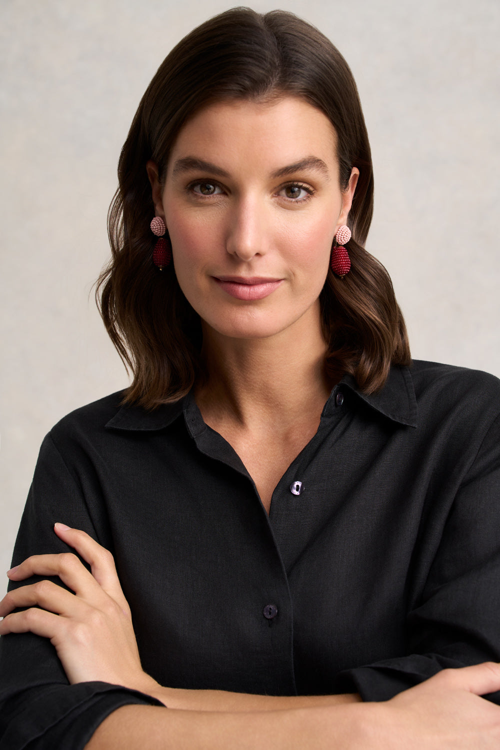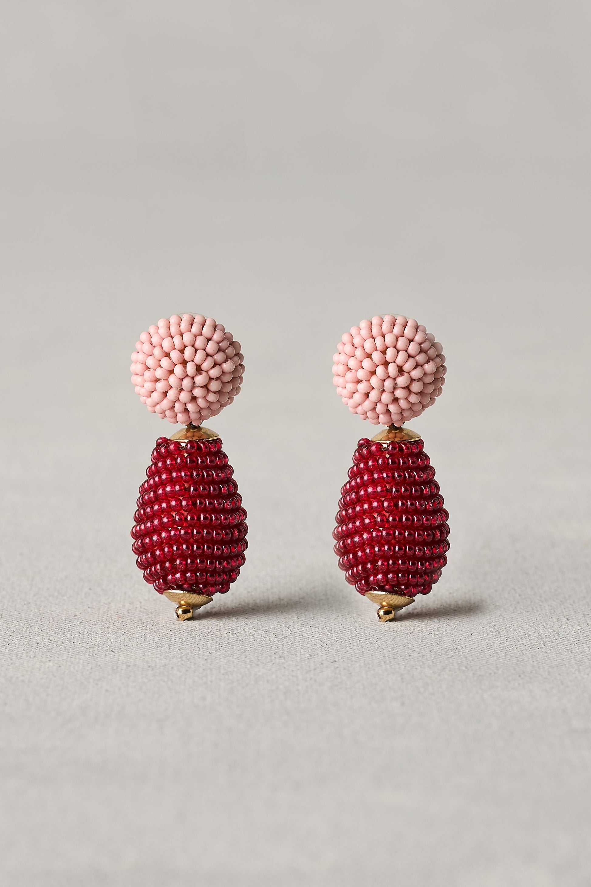 Layered in texture and tone, these double drop studs feature beading in tonal pinks. Eye catching and elegant, they add gentle movement and artisanal charm adding polish to any occasion.