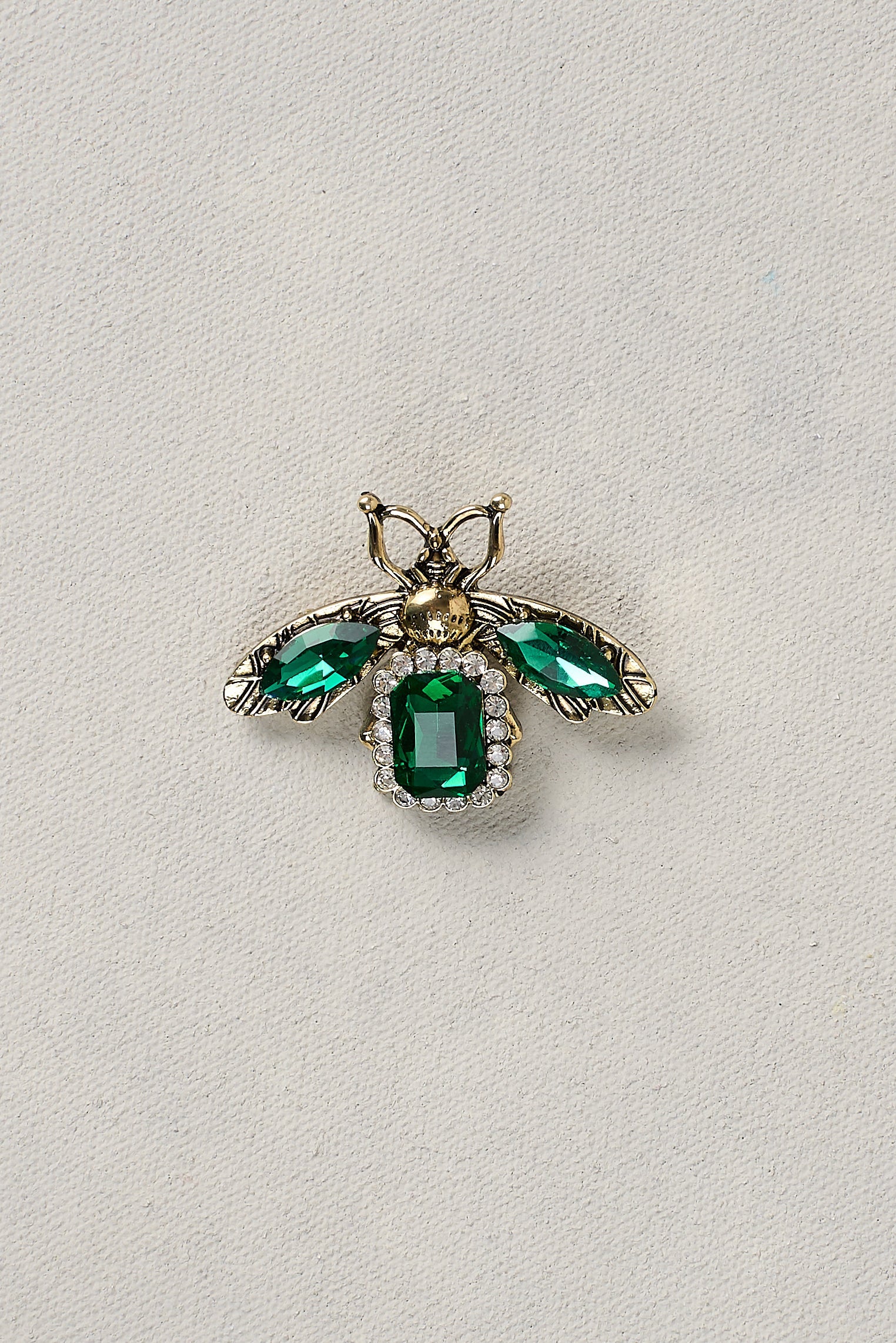 A little piece of whimsy to brighten your day. This sparkling bee brooch is crafted with glass stones and gold metal hardware. Pin it to your coat, scarf or bag for a dash of joyful glamour.