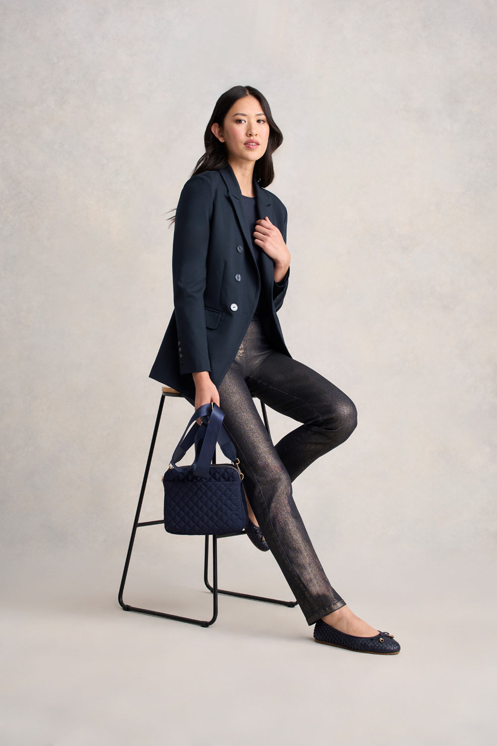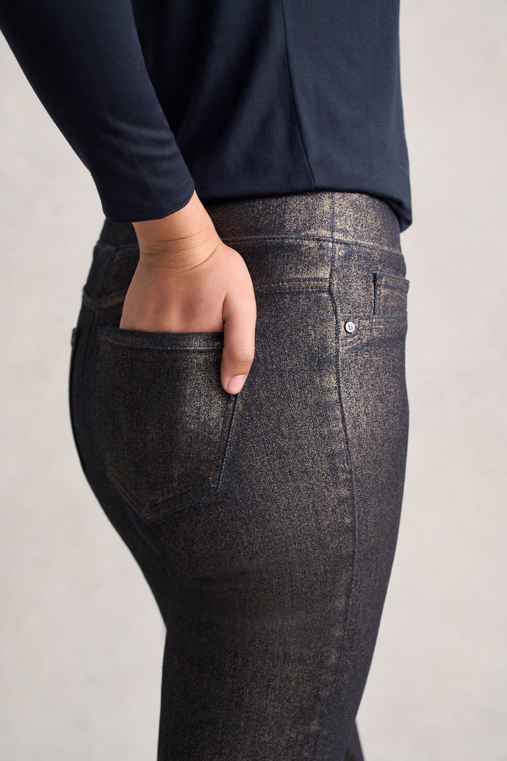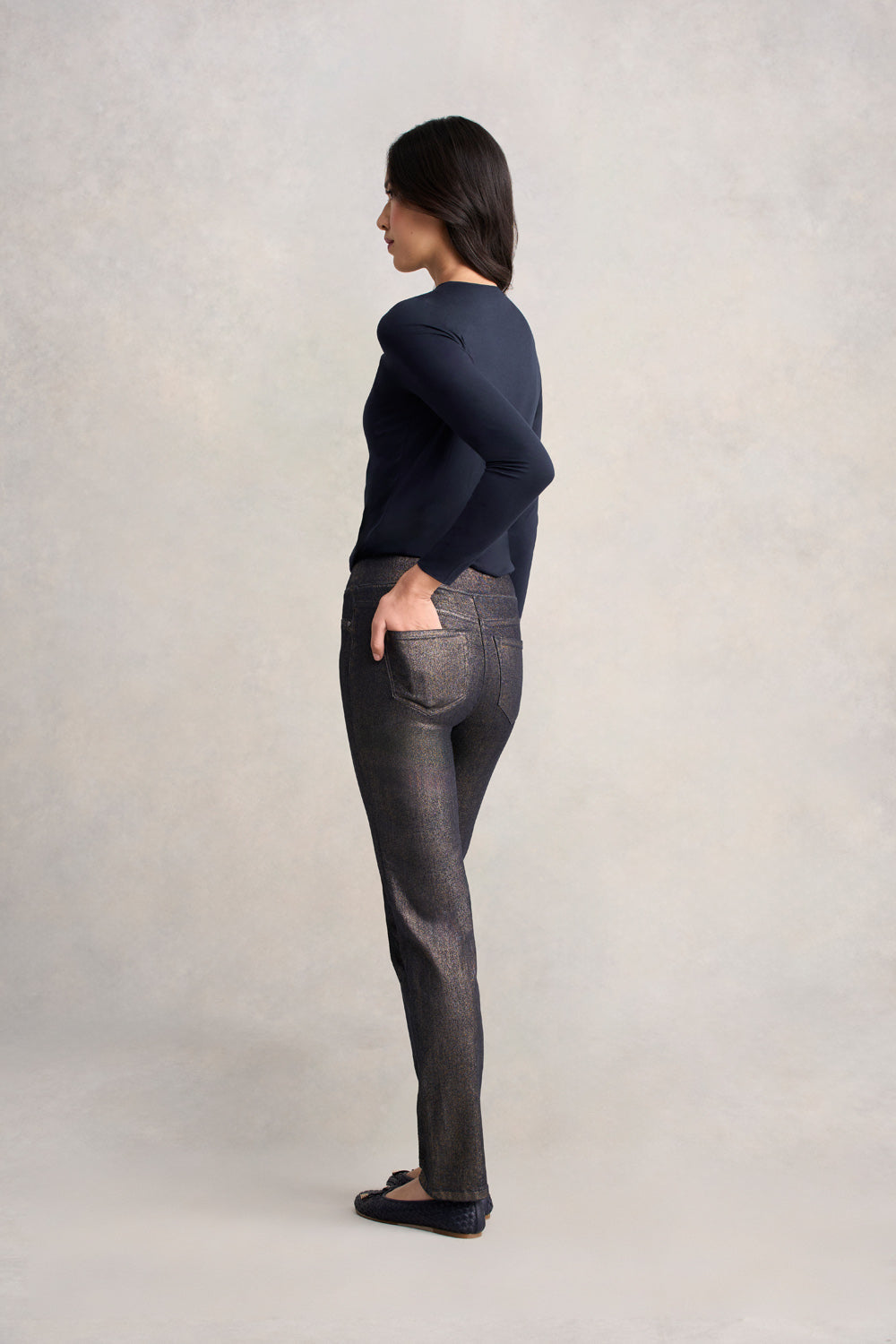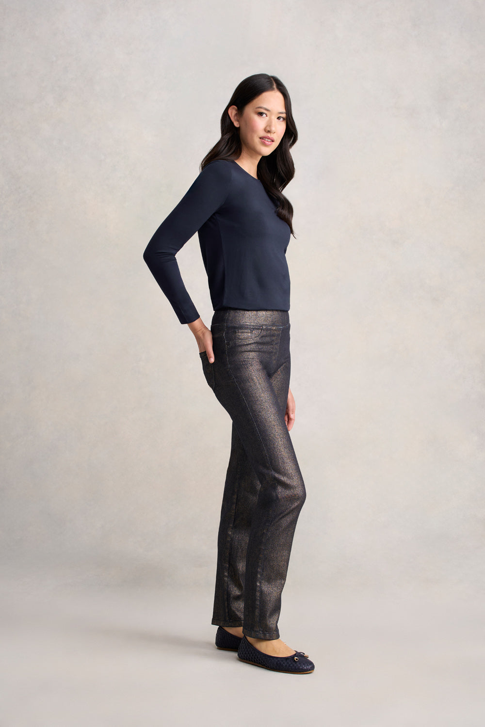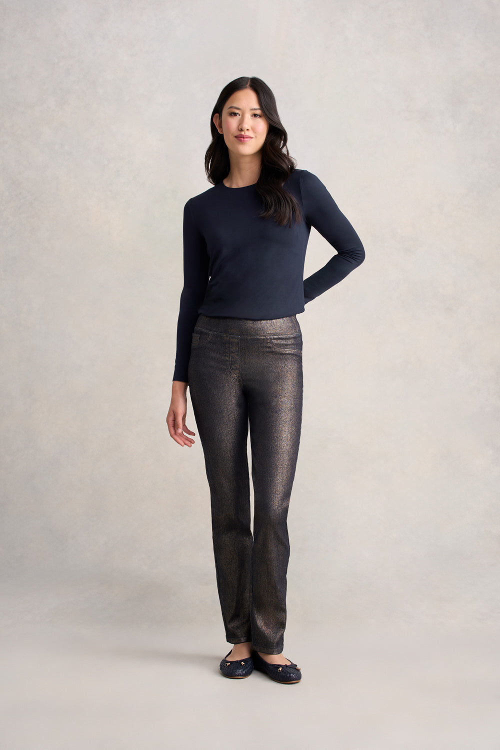 Add a touch of Parisian flair to your look with our new shimmering metallic Bengajean®. Crafted from foil-coated denim, this full-length, straight-leg style combines everyday ease with subtle sophistication. The pull-on style, elasticated waistband and breathable finish will keep you effortlessly comfortable. Polished yet relaxed, it's your new go-to for chic, all-day style.