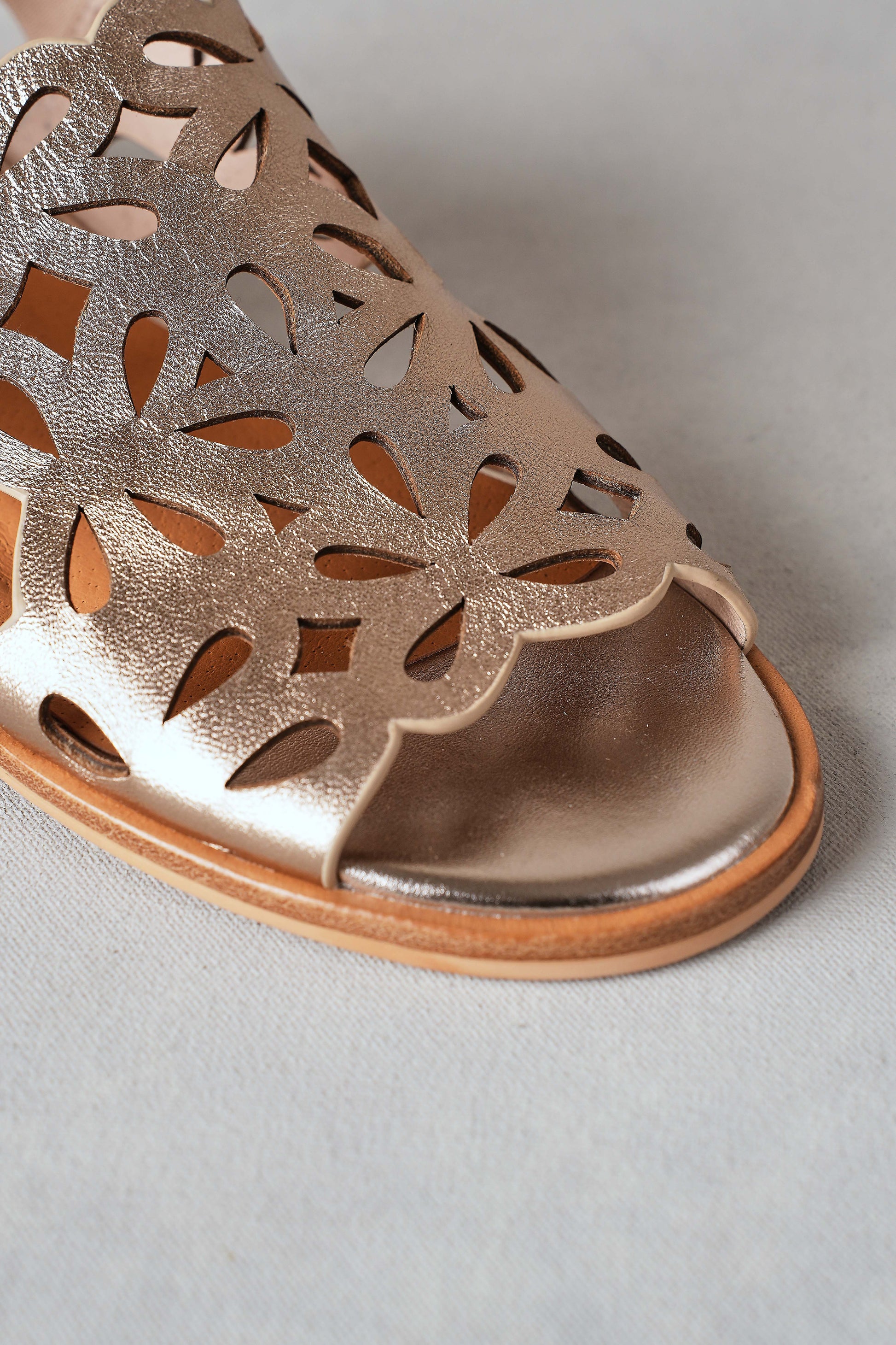 A brand new style with a modern touch, the Clara Sandal in Metallic shines with artisanal flair. A padded sole and elasticated back strap promise lasting comfort, while the floral cut-outs add playful edge. Ideal for summer gatherings or coastal holidays, it’s a versatile sandal to elevate everyday style.