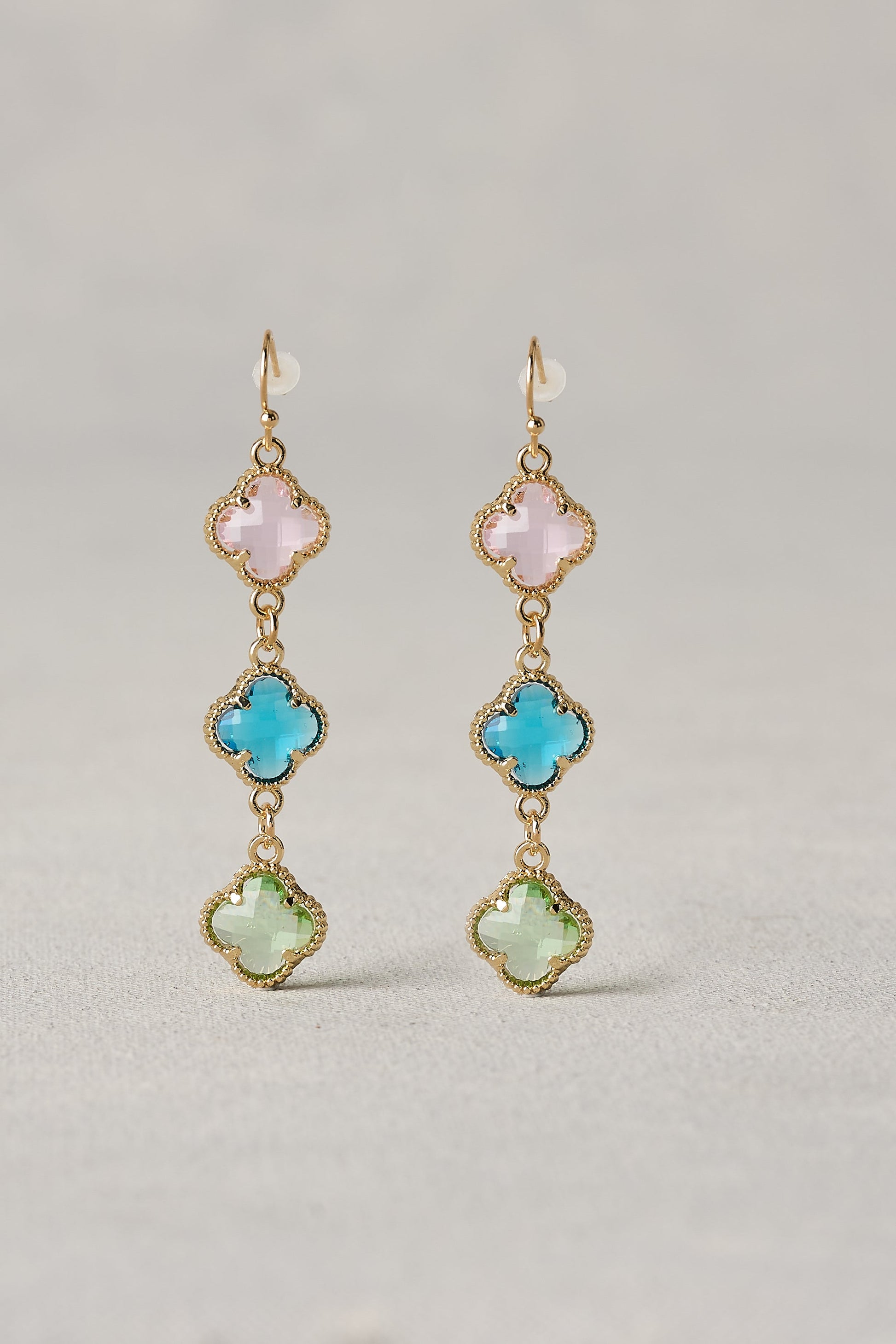 These crystal clover earrings add a pop of colour to your look. With gold-tone hardware and a drop silhouette, they’re designed to dance with the light — perfect for everyday magic.
