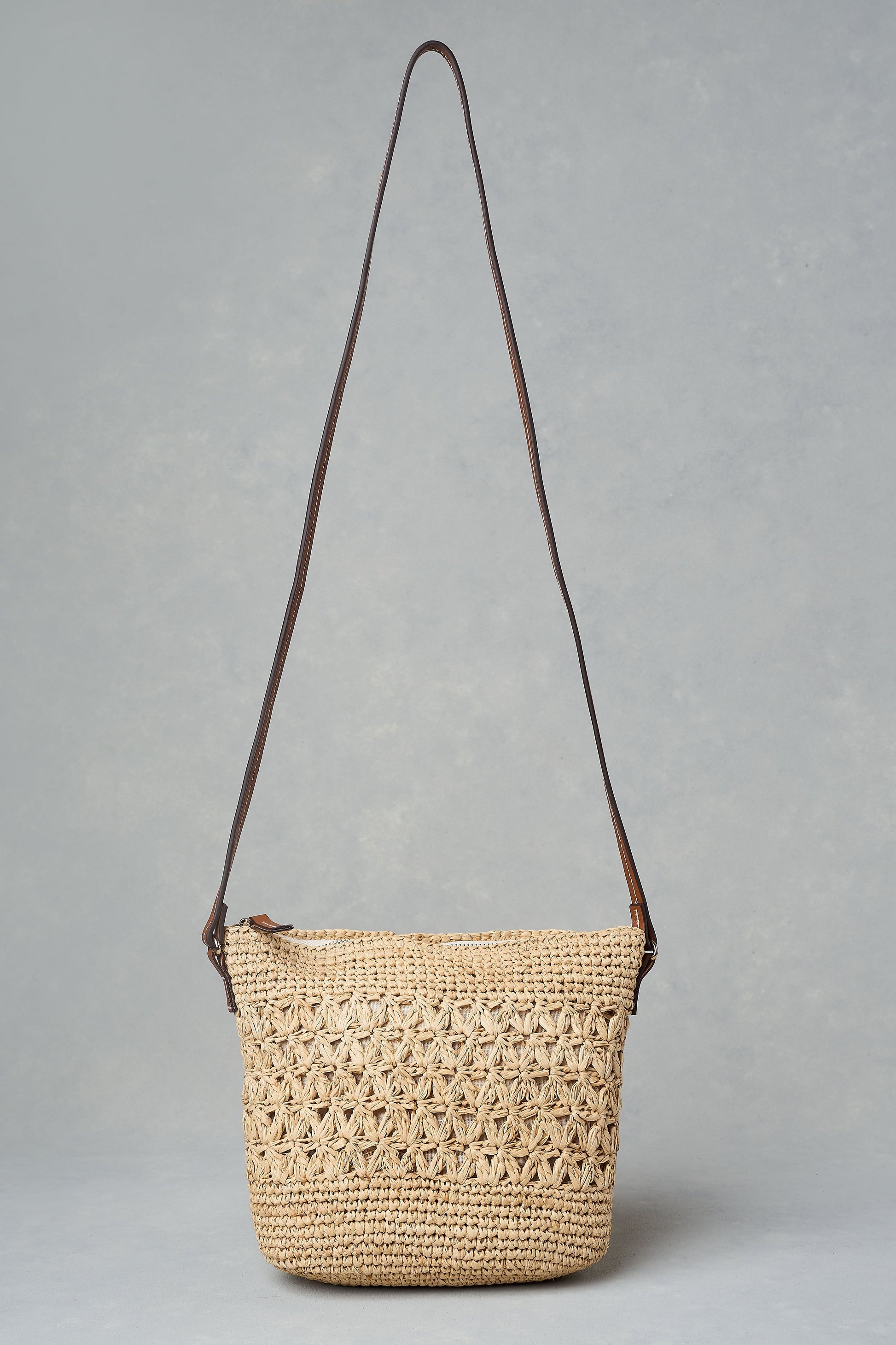 Handcrafted charm meets practicality in this raffia Crochet Crossbody, finished with leather trims and a zip closure. With a natural lining and easy silhouette, it’s ideal for weekends, coastal escapes or simply adding texture to your daily wardrobe.