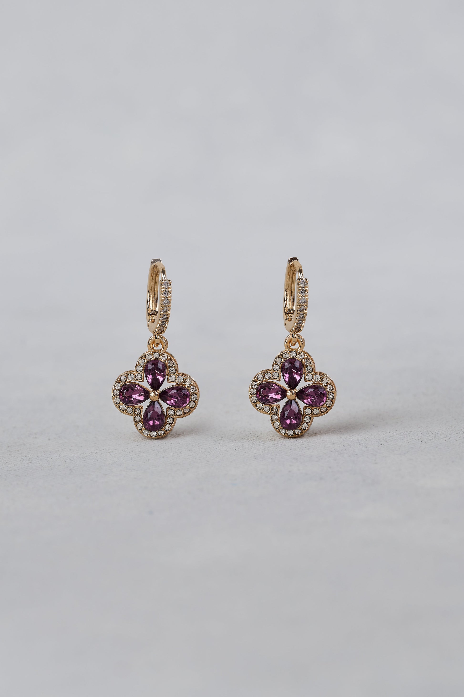 Shaped into delicate purple blooms, these earrings are finished with small diamantes for a touch of glamour. A feminine flourish that works beautifully for both special occasions and evenings out.