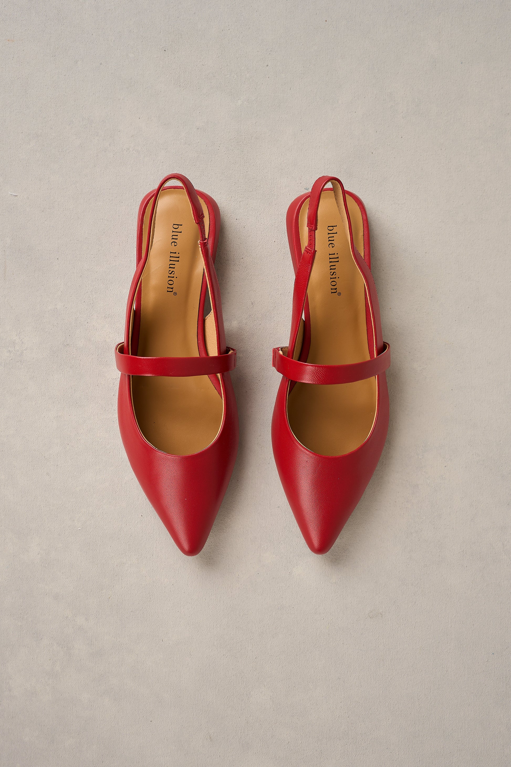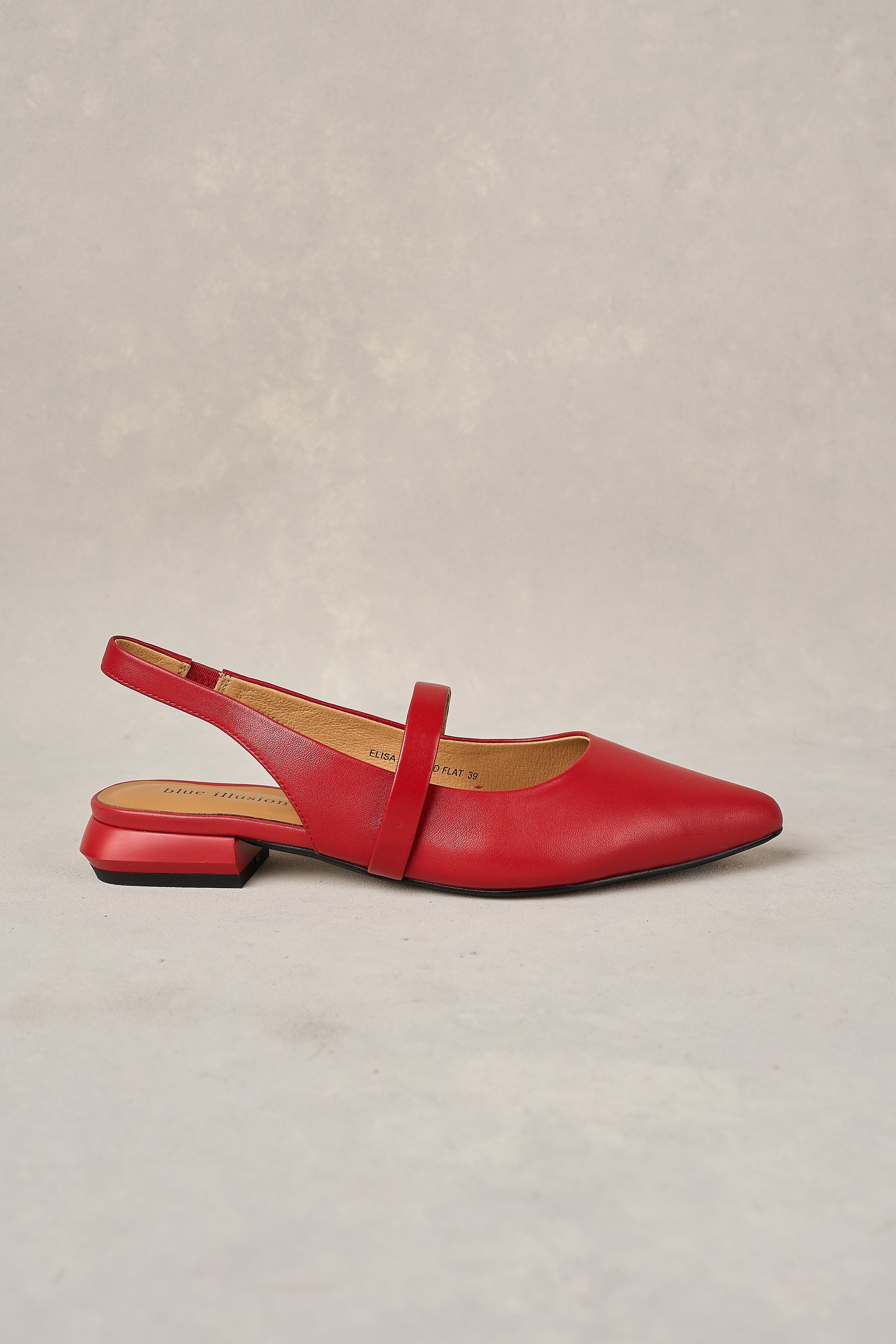 Introducing our Elisa Pointed Flat, designed for discerning women who appreciate comfort and sophistication. Crafted from Rouge leather with a slingback and fashionable foot strap, this shoe blends style and practicality. Slip on this dressy flat and go.