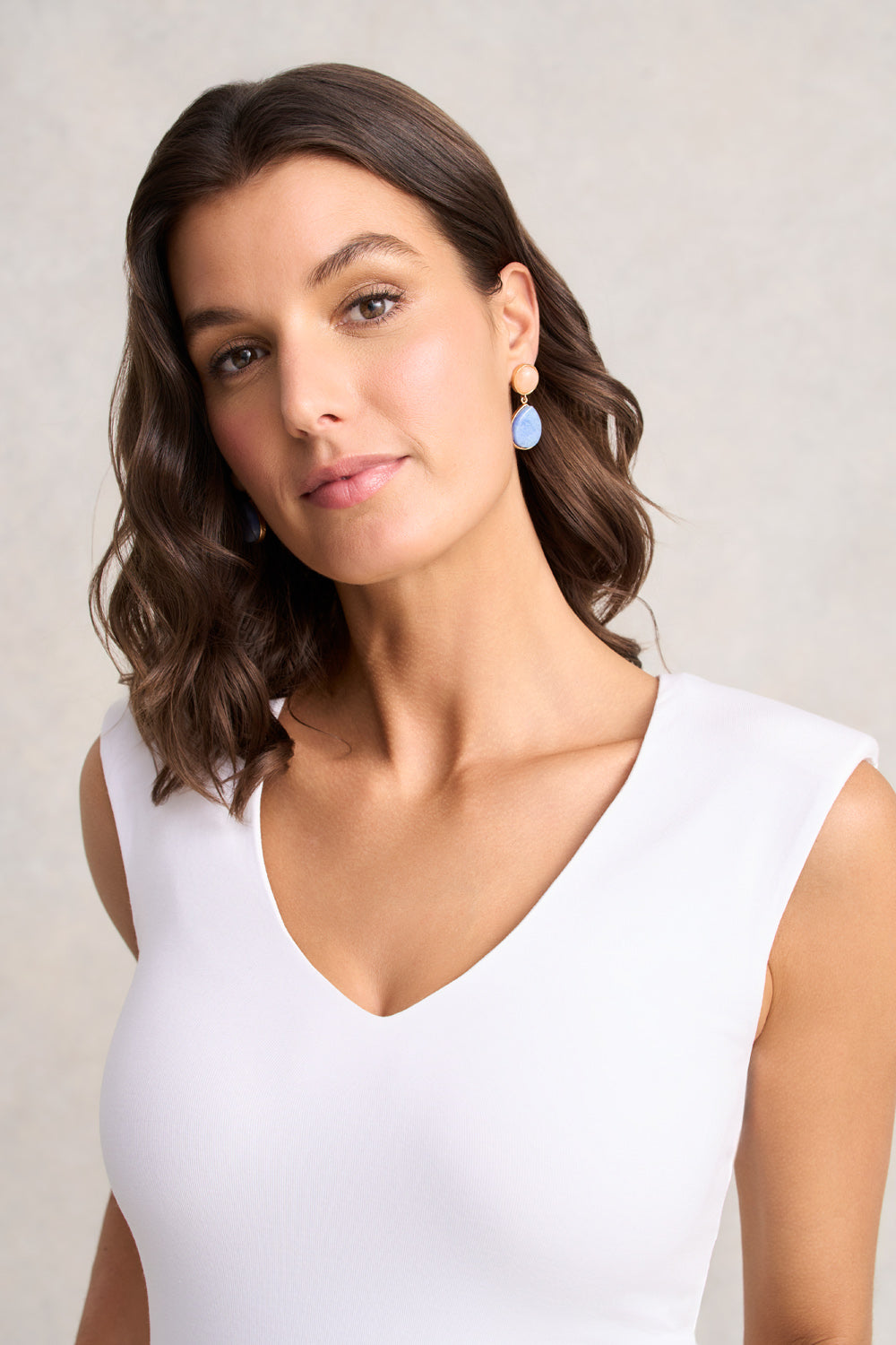 A wardrobe essential with a refined twist. This reversible tank offers a deep V-neckline on one side and a high boat neck on the other, with light shoulder pads for structure. Double-layered for smooth shaping, it’s the perfect base for summer tailoring or layered looks.