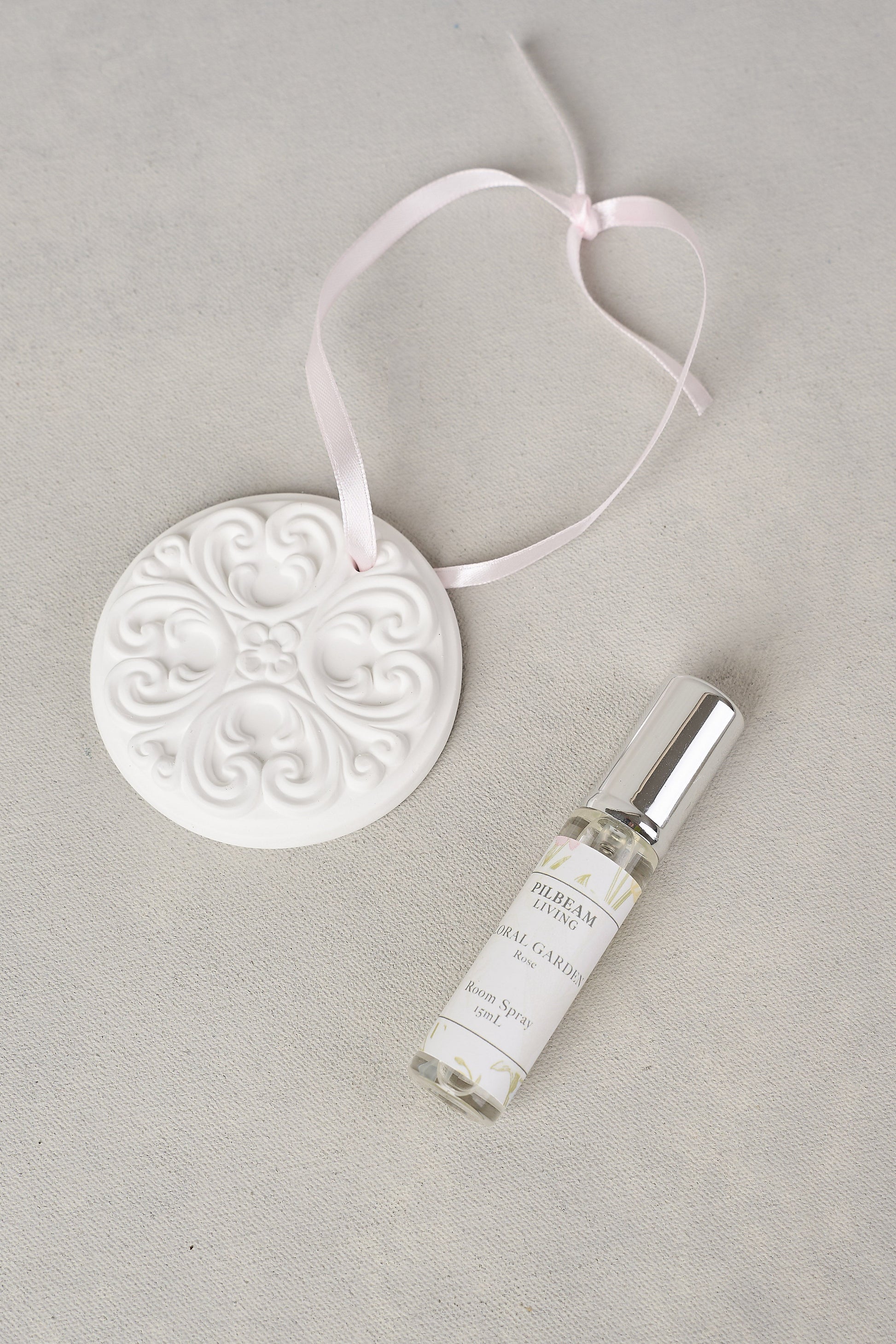 This delicate ceramic disc with its intricate floral design, can be used to gently fragrance your wardrobe, drawers, cupboard, bathroom, car or office. Simply spray the ceramic disc with the Rose fragrance and place or hang it anywhere you like for a subtle and delightful aroma. A lovely addition for those looking to add a unique touch to their space.