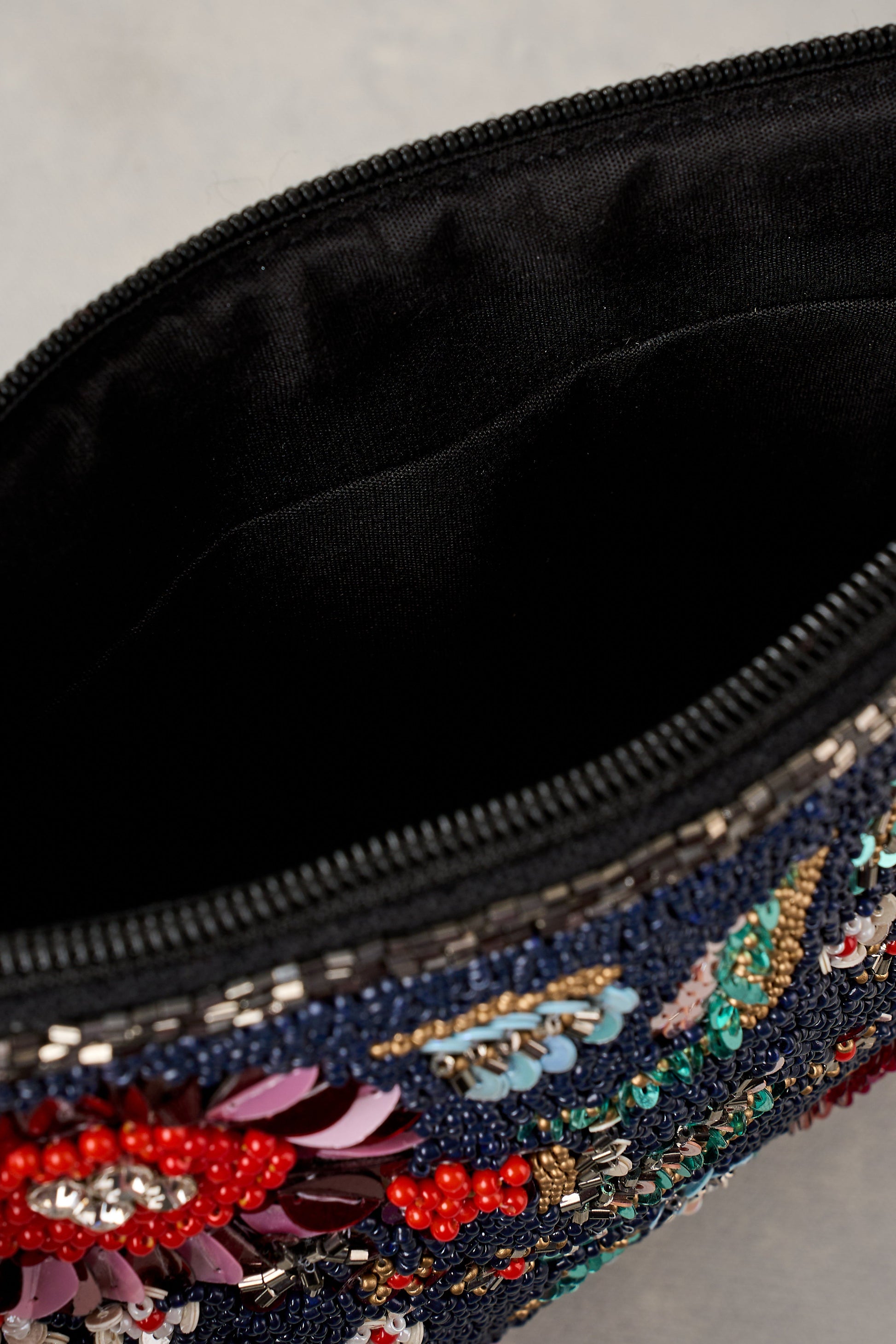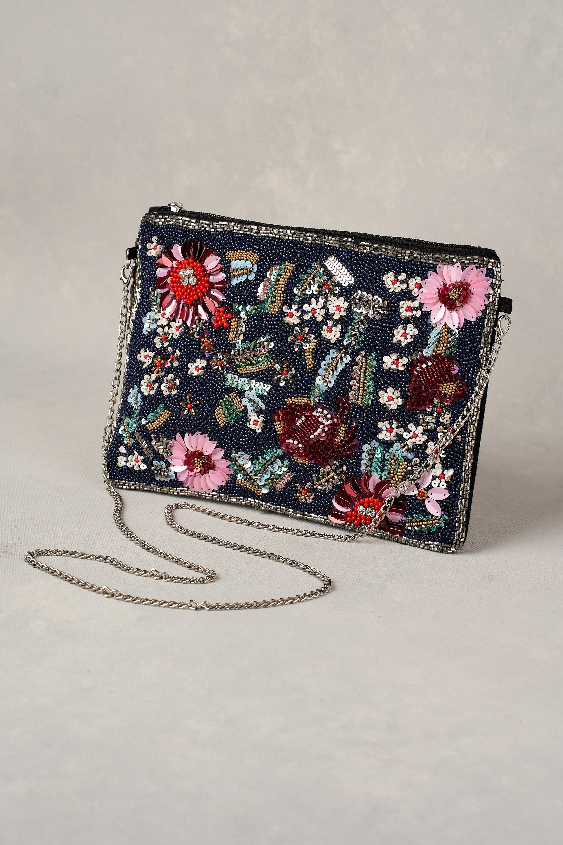 Delicately embellished with seed beads and shimmering sequins, this floral clutch is a standout piece of our Lumière d’Hiver collection. The intricate design is paired with a silver shoulder chain offering both elegance and versatility. The perfect amount of sparkle for a special night out.
