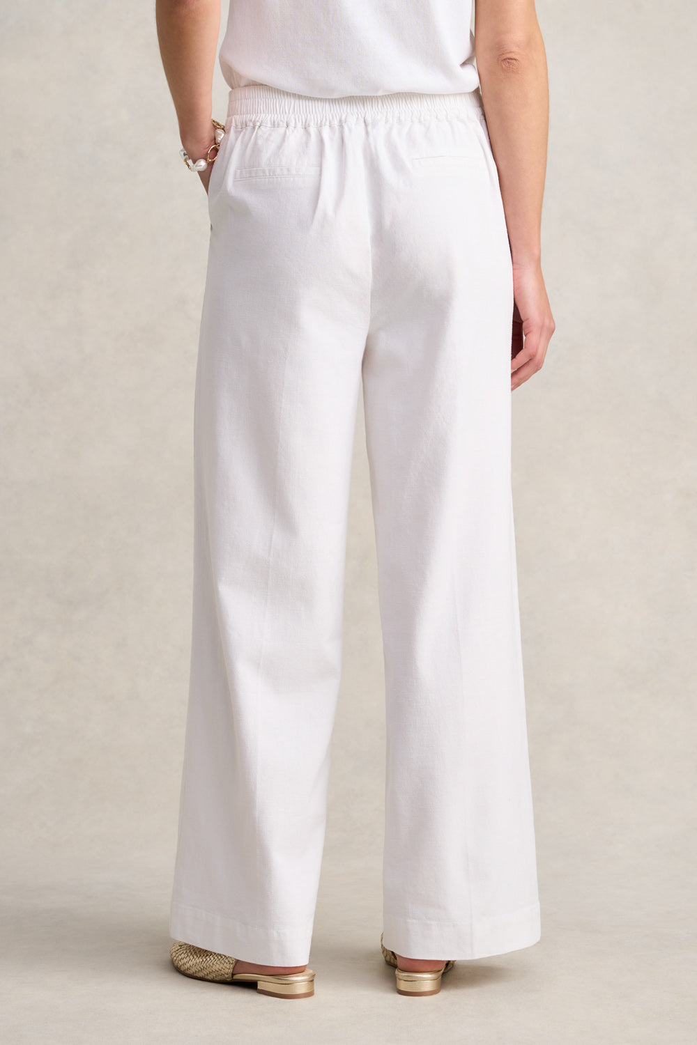 Timeless and tailored with a modern ease, our Full Length Waist Tab Linen Pant is a warm-weather essential. Crafted from a stretch linen blend for comfort and breathability, it features tab and button detailing, with a flat front and elasticated back for a flattering fit. Full-length with functional patch pockets, this versatile pant in classic white pairs effortlessly with everything from crisp shirts to relaxed linen tops.