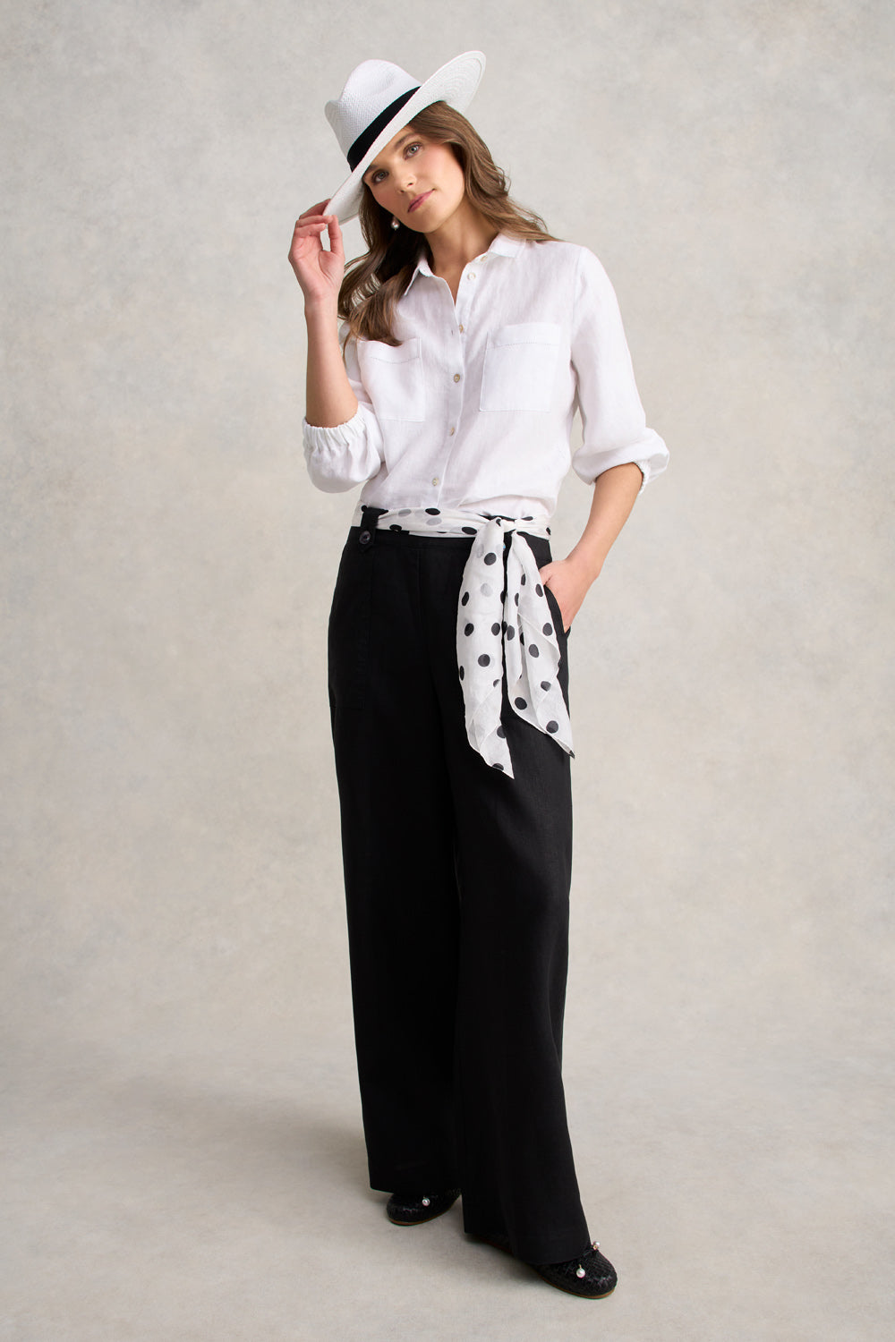 Timeless and tailored with a modern ease, our Full Length Waist Tab Linen Pant is a warm-weather essential. Crafted from a french linen blend for comfort and breathability, it features tab and button detailing, with a flat front and elasticated back for a flattering fit. Full-length with functional patch pockets, this versatile pant pairs effortlessly with everything from crisp shirts to relaxed linen tops.