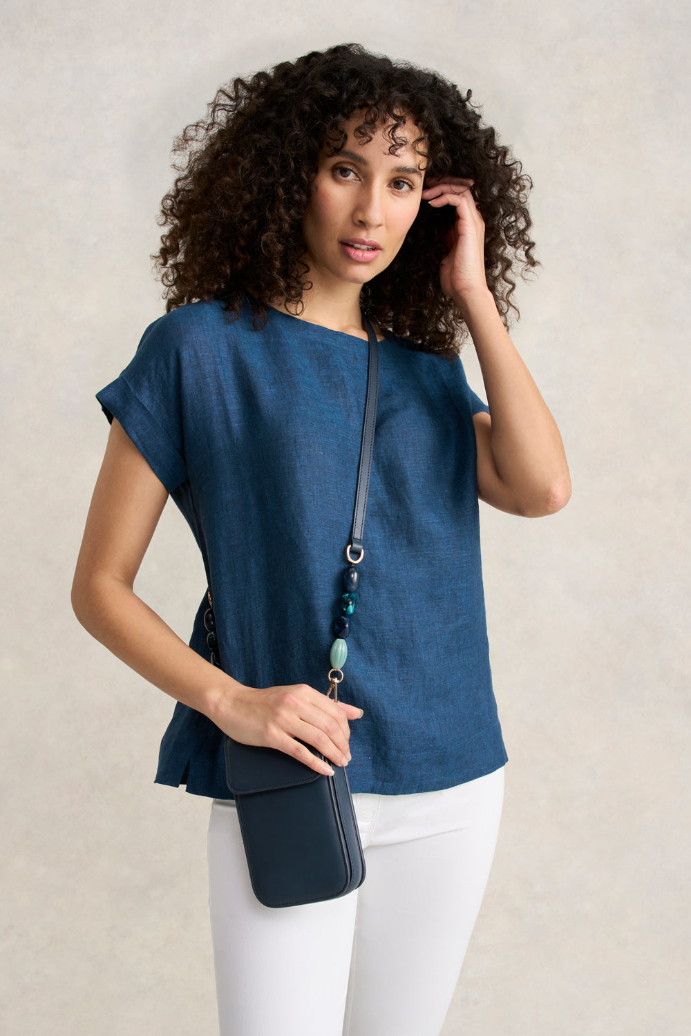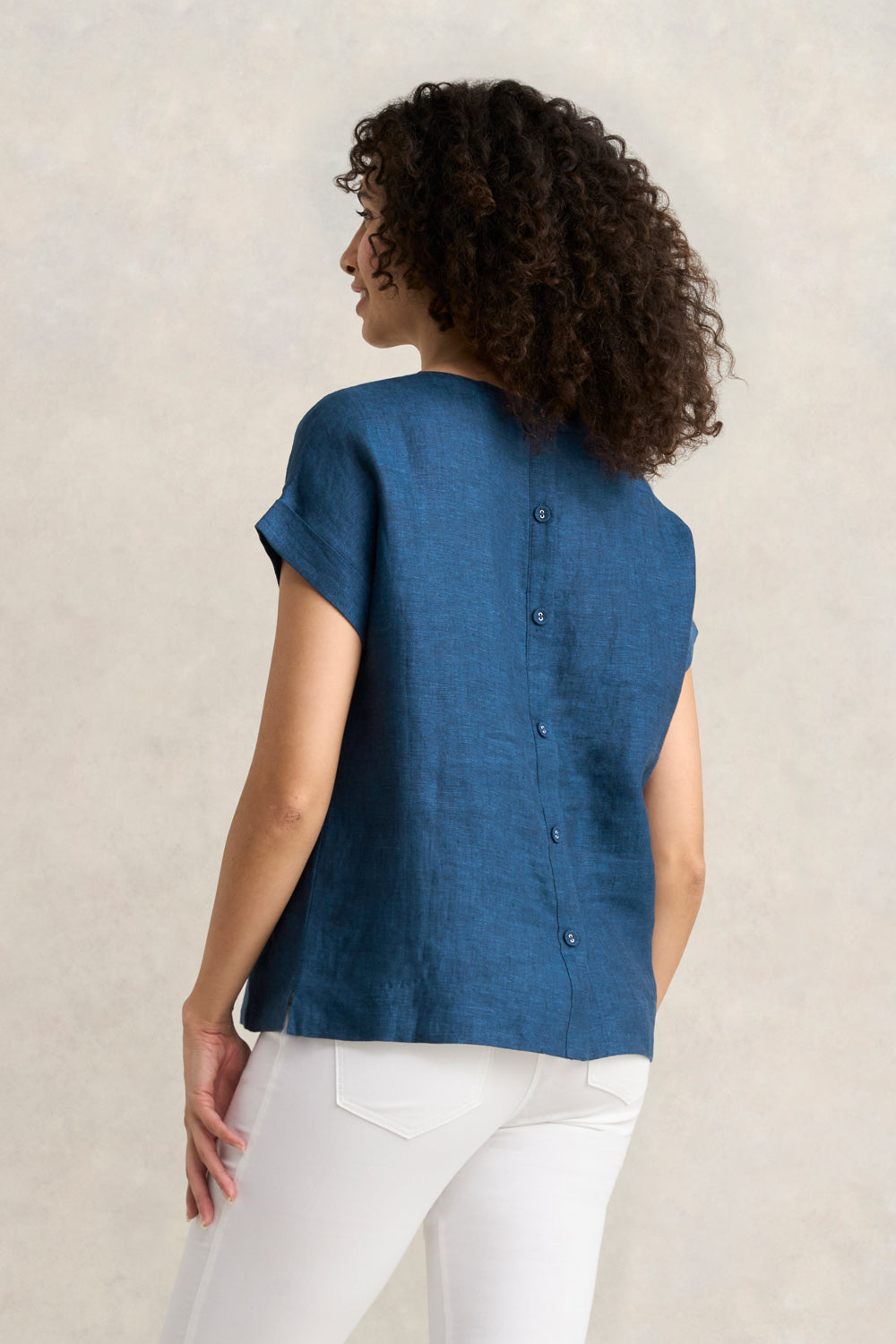 With a relaxed fit in breathable, 100% French linen, this button back top exudes easy-going charm making it a great choice for casual occasions. Now available in Navy Delave, we love the stylish centre back button placket, turn back cuffs and comfortable wide scoop neckline.