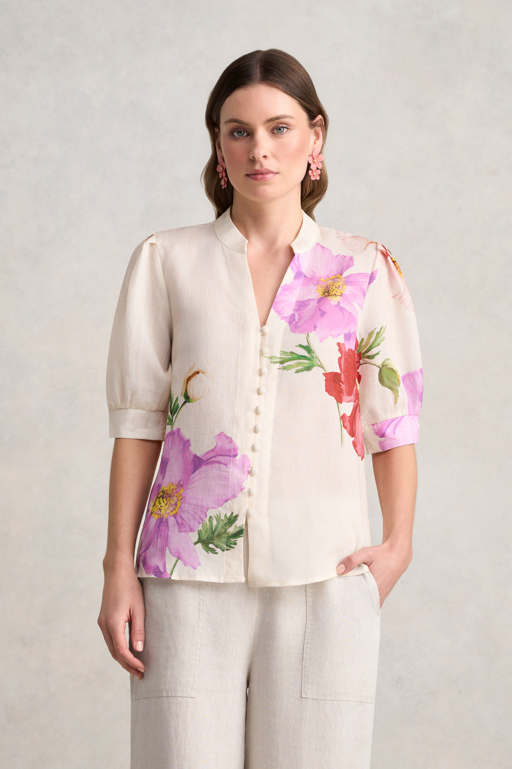 Showcasing the standout Poppy Print, you are bound to turn heads in our Ramie Blouse. With a cutaway neckline, puff sleeves and button detailing , it’s a breezy style that pairs beautifully with its matching Ramie A-Line Skirt for an elegant co-ord.
