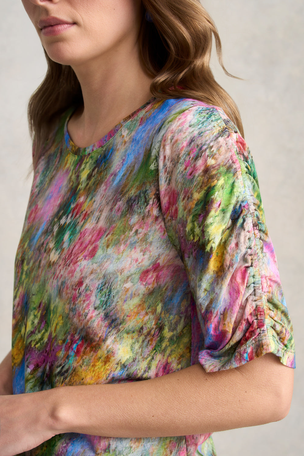 Ruched Sleeve T-Shirt – Meadow Print