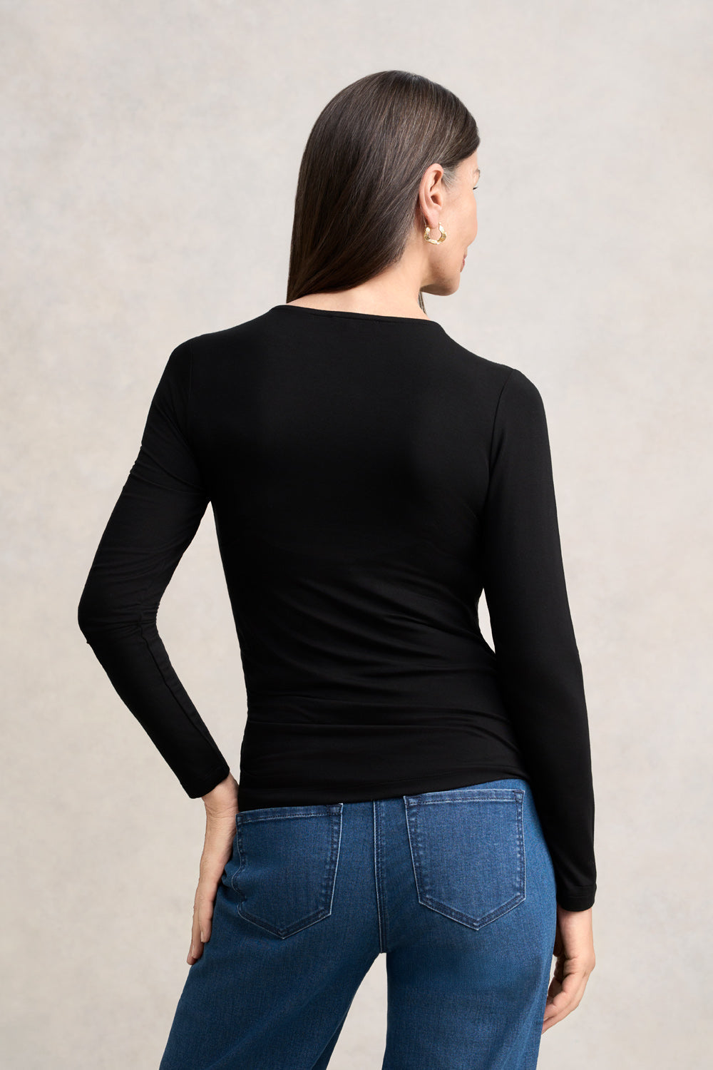 Polished and perfectly proportioned, our Draped Jersey Top is a refined wardrobe essential. Made from silky-soft LENZING™ ECOVERO™ jersey, it features an elegant, draped neckline and subtle gather detail that adds a gentle, feminine finish. With a sleek silhouette, this piece is equally suited to elevated everyday style or a chic evening out.