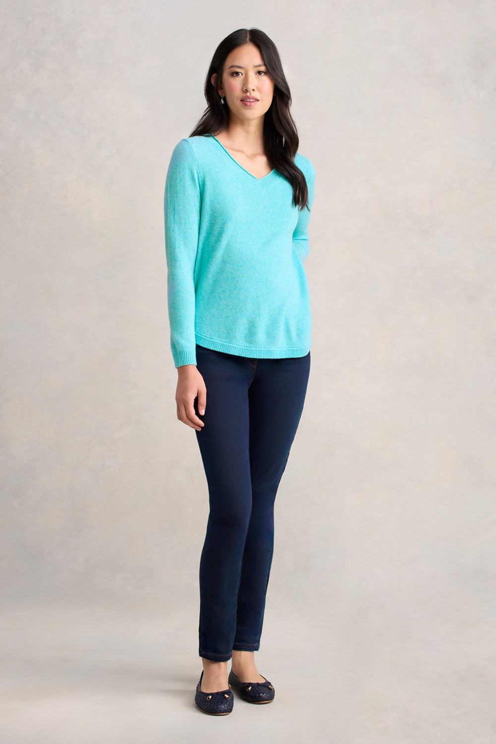 Luxuriously soft, our Merino V Neck Jumper is crafted from 100% Responsible Wool Standard Australian Merino wool. Cosy and comfortable with a relaxed fit in a sweet Turquoise Marle, this jumper will keep you snug and warm all winter long!