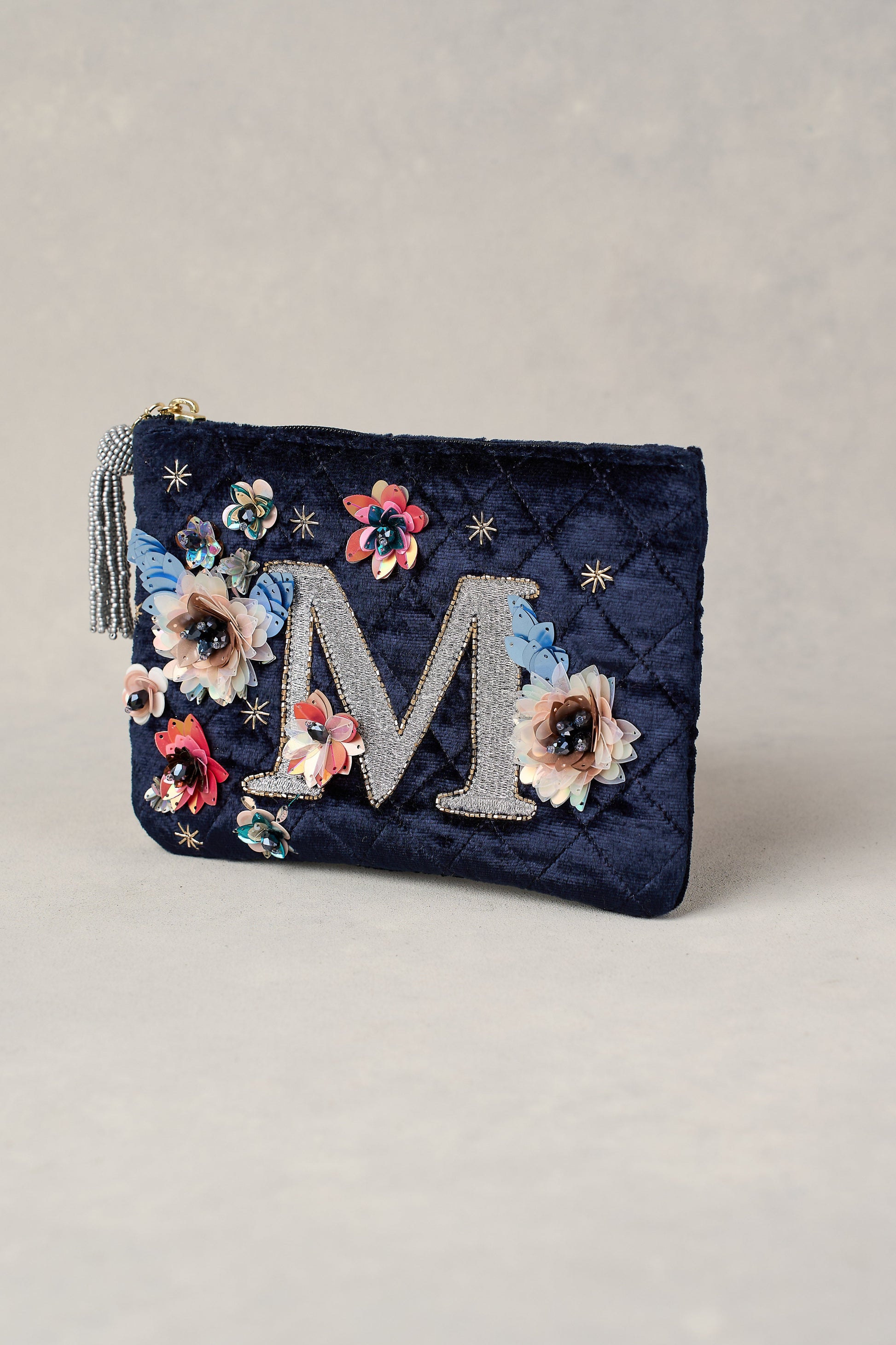 Take your cosmetics with you wherever you go in this personalised ‘M’ monogram cosmetic bag. Featuring a beautiful 3D floral design embellished with seed beads and sequins over a blue base, add a pop of colour to your beauty regime. This bag makes a lovely personal purchase or thoughtful gift for someone special this Mother’s Day.