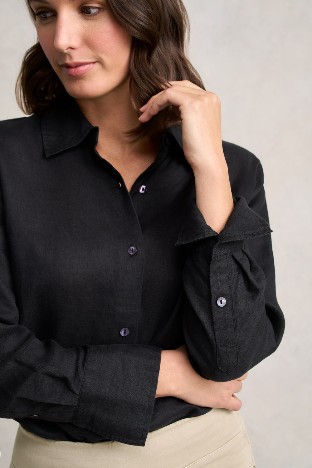 Chic in its simplicity, this French Linen Shirt is your go to for elevated everyday dressing. With side splits and a relaxed cut, it wears beautifully undone or buttoned-up — always with timeless appeal.