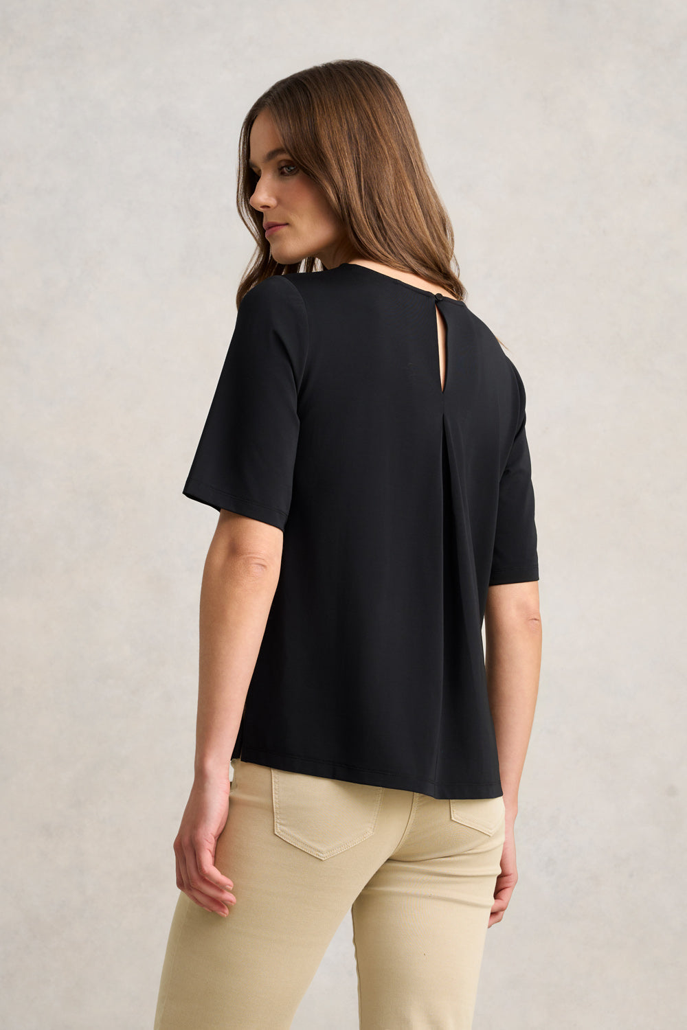 Designed with a sleek sharp cut and a drape for soft movement, this tee is your elevated essential. The high twist jersey resists creasing, making it ideal for travel or days on the go. Clean lines and side splits add a modern edge to this versatile garment.