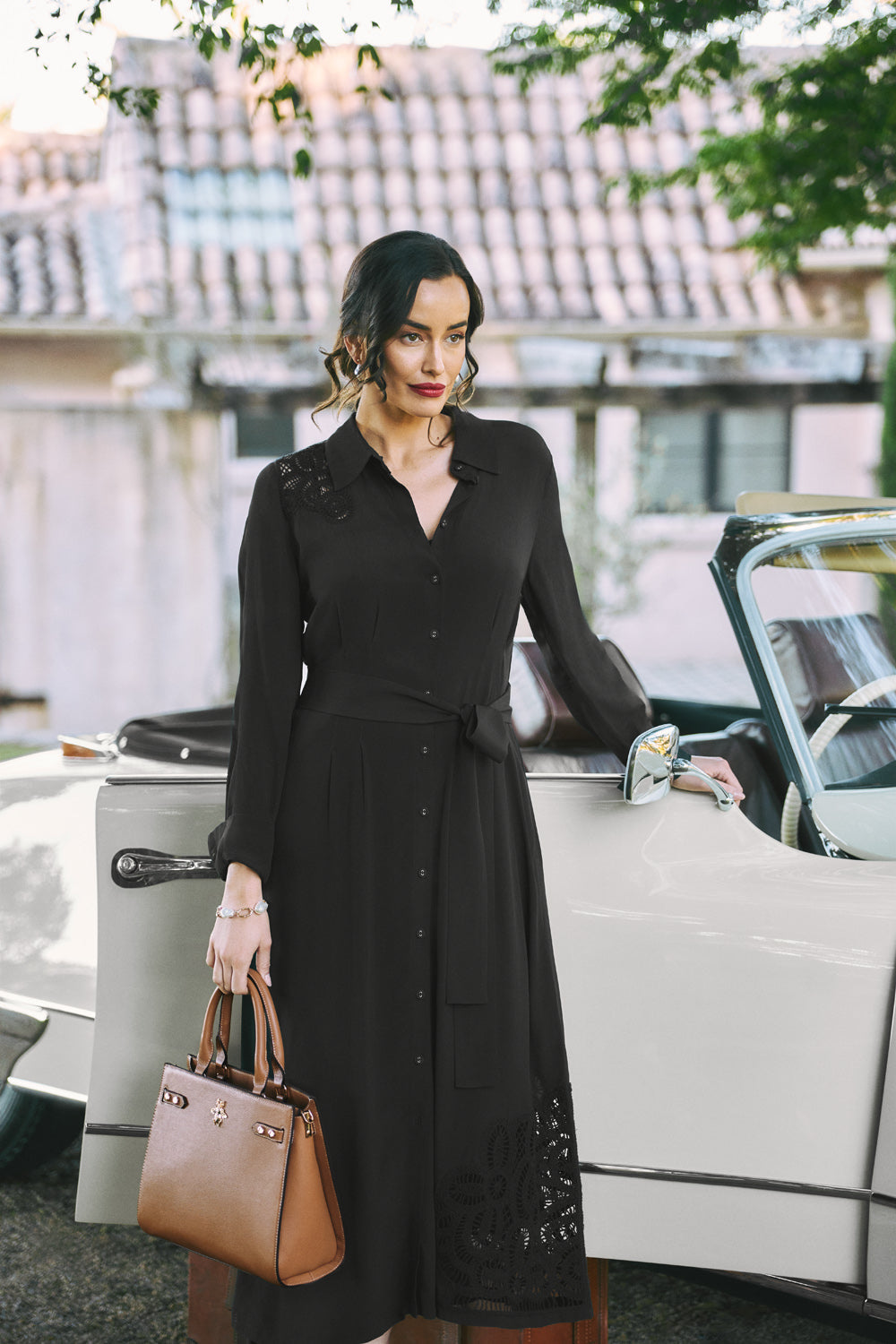 Elegant with a subtle edge, this black shirt dress is a timeless piece with modern detail. Asymmetric lace inserts and soft waist pleats add definition, while the optional belt offer styling versatility. From art gallery afternoons to candlelit dinners, this dress moves beautifully wherever the day takes you.