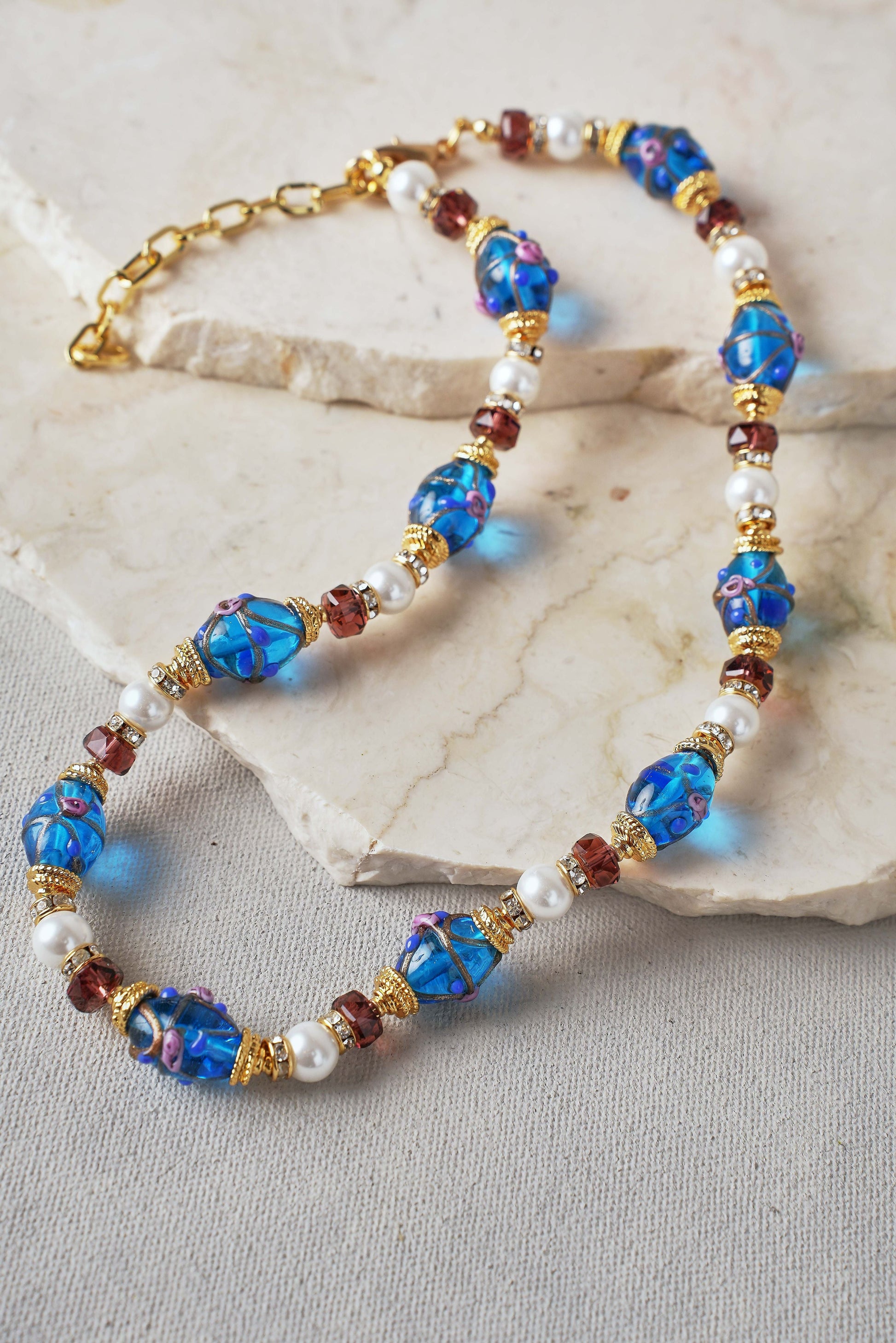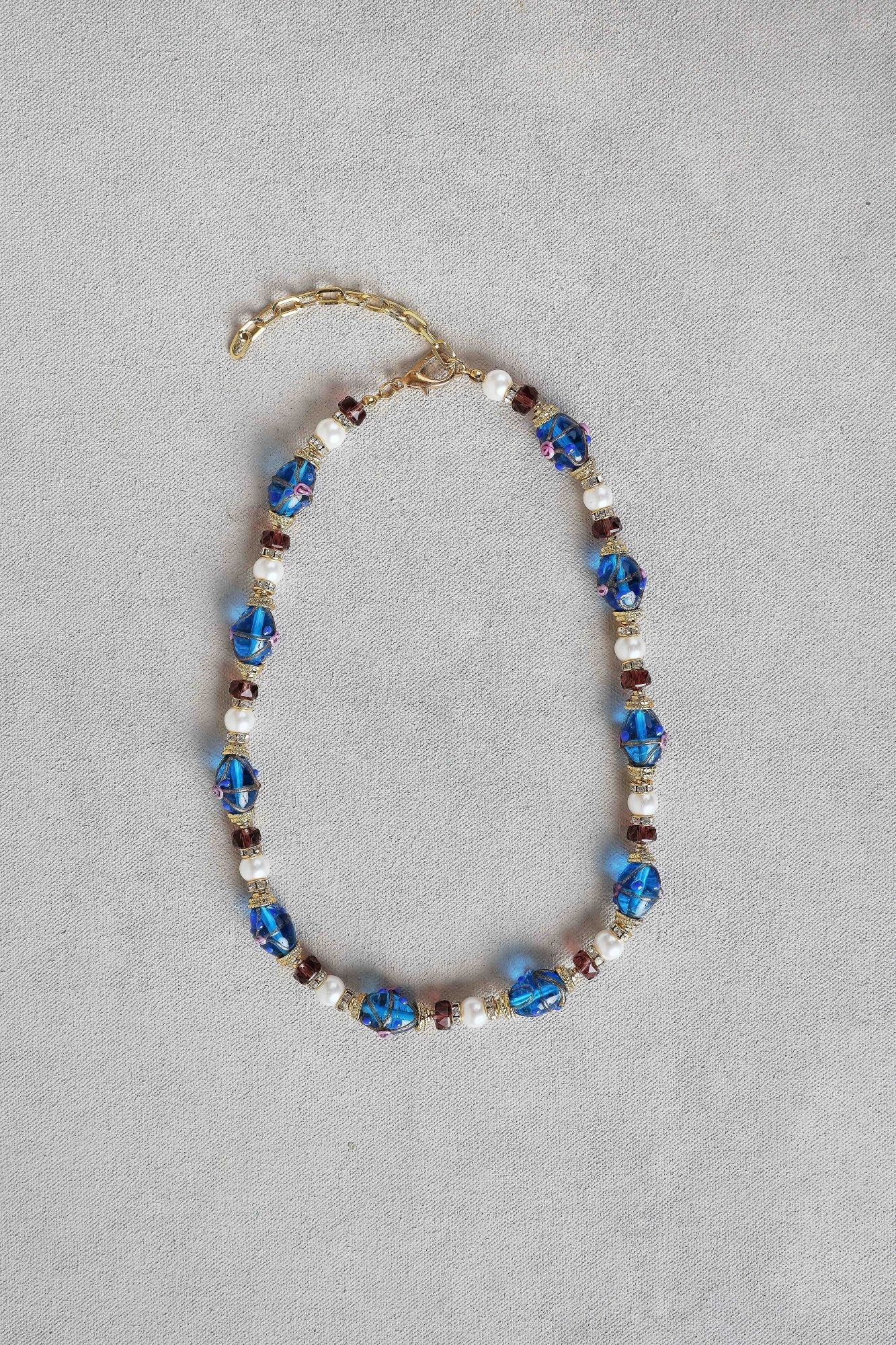 Painted Bead Necklace – Blue