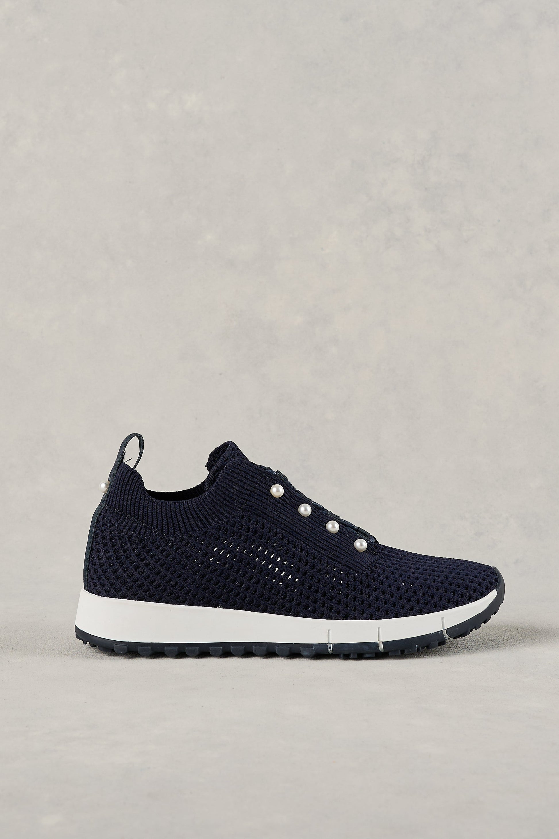 Blending sporty ease with a touch of glamour, the Perla Knit Sneaker in Navy features breathable knit construction and slip-on styling. Pearl detailing and a soft leather sock elevate this everyday essential to something très chic.