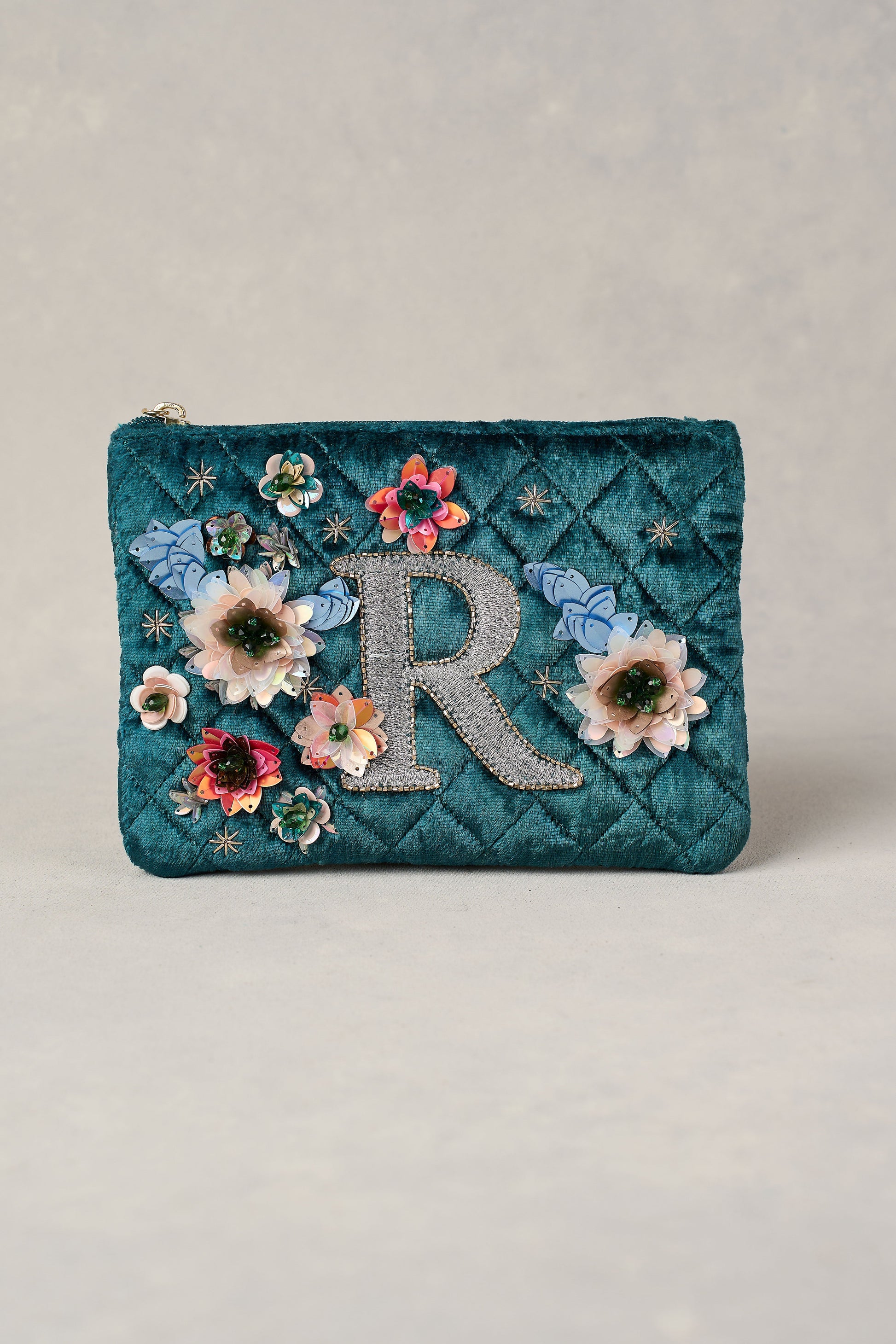 Take your cosmetics with you wherever you go in this personalised ‘R’ monogram cosmetic bag. Featuring a beautiful 3D floral design embellished with seed beads and sequins over an emerald base, add a pop of colour to your beauty regime. This bag makes a lovely personal purchase or thoughtful gift for someone special this Mother’s Day.