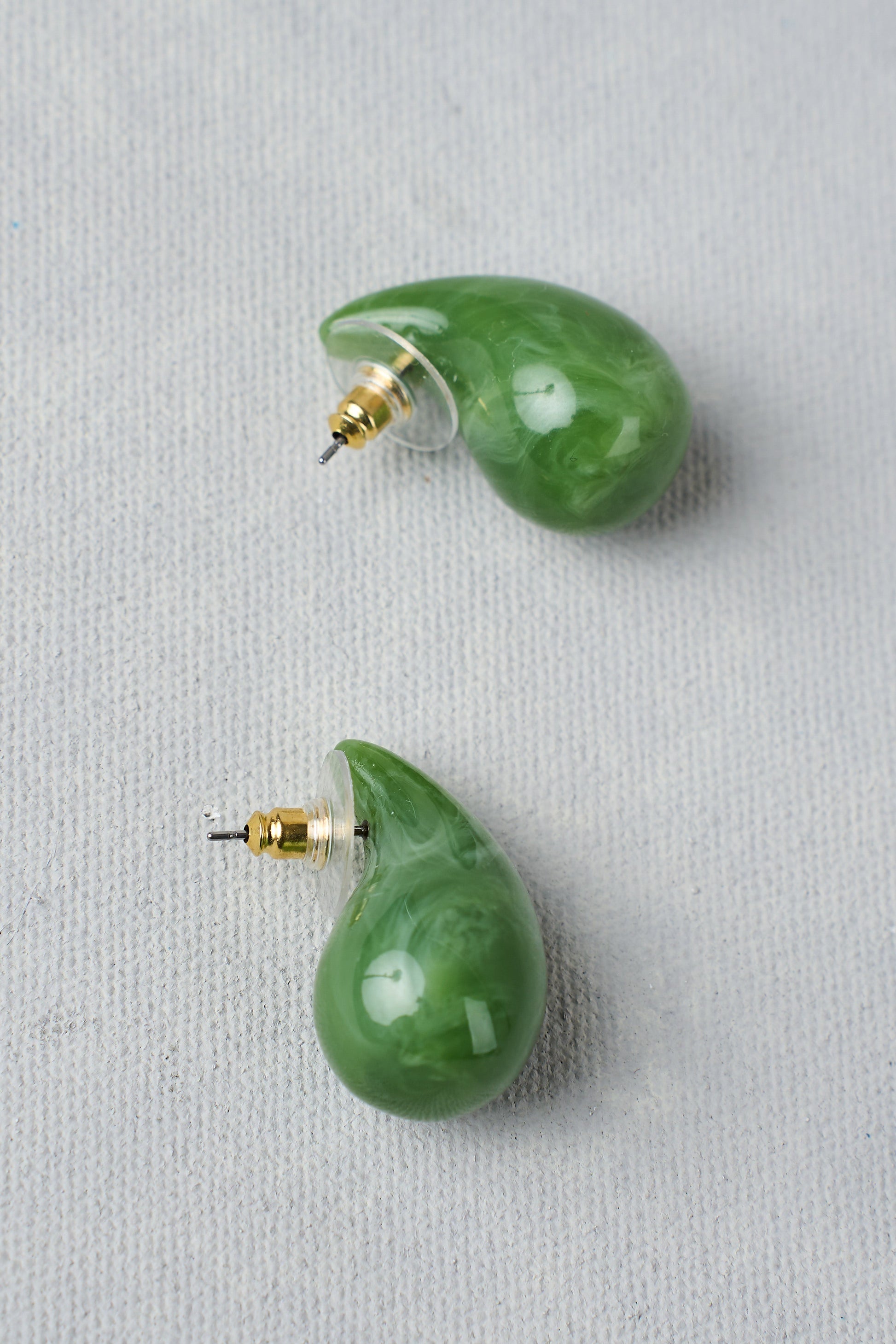 With their sculptural teardrop shape and sage hue, these resin studs are both striking and easy to wear. A modern accent to your classic outfits, they offer just the right amount of statement.