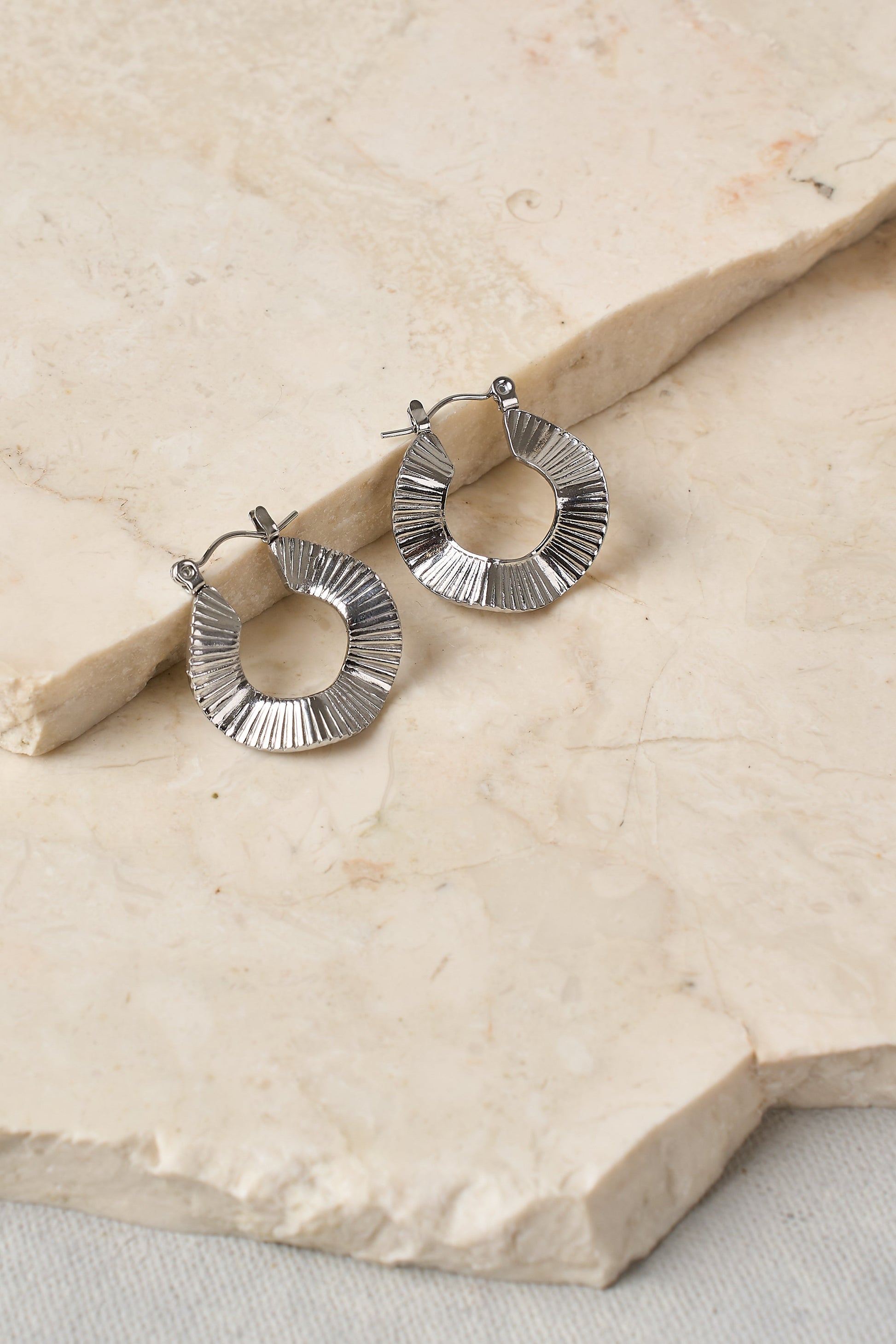 Featuring a textured, wave-inspired design, these earrings will add depth and dimension to any outfit. With a silver finish, this is the perfect everyday hoop with a twist.
