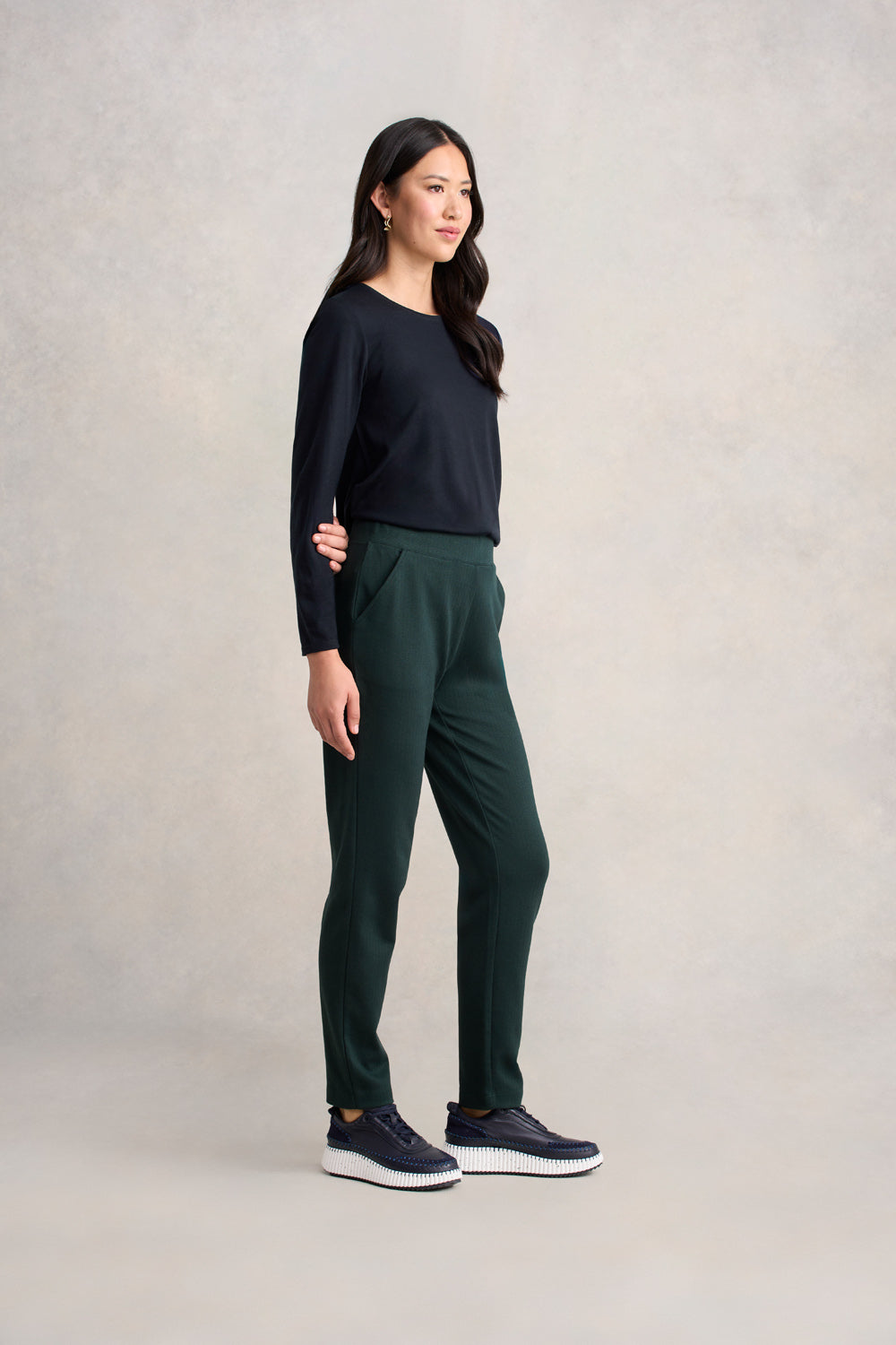 Our Herringbone Leisure Pant is back! The best-selling style has been given a trendy new colour update. Now in Forest, this pant is crafted from a high-quality cotton viscose fabrication. Stretchy and comfortable, this pant is perfect for wearing at home but is also stylish enough to be worn out and about.